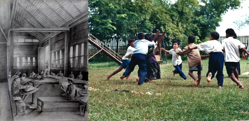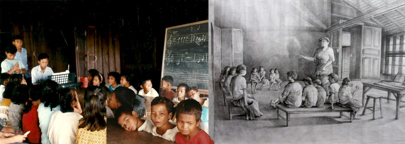 Ouverture dès fin 1995 des trois cours de dessin avec quatre professeurs à mi-temps : Sareth, Bandol, Lao et Vutha (plus un autre un peu plus tard : Ssieun). Leurs élèves ont alors l’âge qu’ils avaient eux-mêmes en 1986 quand ils sont entrés dans mon cours à Site 2. La moyenne journalière par cours est de 70 élèves.