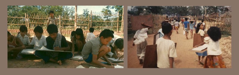 En arrivant dans les camps fin 1979 et début 1980, les Cambodgiens fuyaient les quatre années d’extermination khmère rouge et l’occupation vietnamienne qui s’annonçait. Ils arrivaient exsangues, squelettiques, vêtus de noir (les Khmers Rouges avaient interdit les couleurs), restés debout par le seul instinct de vie ou de survie, mais, passée la frontière, ils s’effondraient. Puis sont venues les années de camp, où ils ont maintenu le moteur de l’espoir : les réfugiés croyaient encore pouvoir ramener la paix et l’indépendance dans leur pays. Au fil des ans, les échecs militaires ont succédé aux échecs diplomatiques. Et puis, alors que la résistance khmère subissait de cuisants revers en 1985, les camps de résistance se sont implantés en Thaïlande de manière définitive. Ils sont ainsi devenus, au fil du temps, un immense camp de réfugiés.