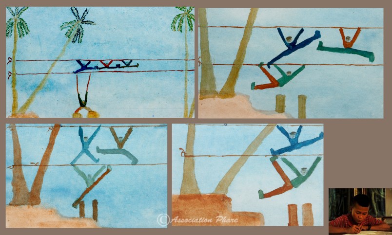 Un autre point qui me semblait essentiel était de ne pas conforter mes jeunes élèves dans une identité de victime. L’enjeu était qu’ils se constituent comme sujets, debout et tournés vers l’avenir. Par l’appropriation du dessin comme authentique moyen d’expression, ils sont devenus témoins et porte-parole non plus seulement pour eux-mêmes mais pour toute la communauté. Ils ont acquis la dignité de sujets de ceux qui, après avoir tout perdu, trouvent encore le moyen d’affirmer, non plus en s’appuyant sur la confiance dans les institutions de leur société, mais sur leur fond propre. Et comme des enfants, ils ont fait tout naturellement ce qui est le fruit de toute une vie d’effort et de luttes, avec et contre soi, avec et contre les événements et la vie : ils ont fait acte de liberté.